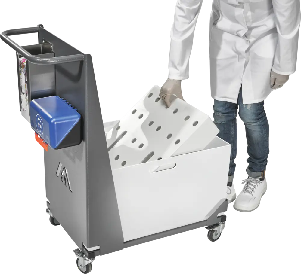 Transport trolley with 4 antistatic rollers
