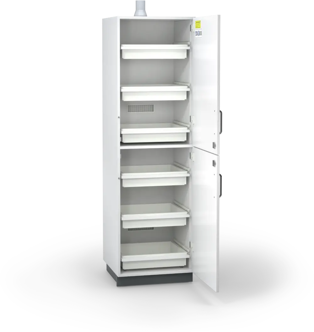 Highly media-resistant safety storage cabinets for the safe storage of aggressive substances.