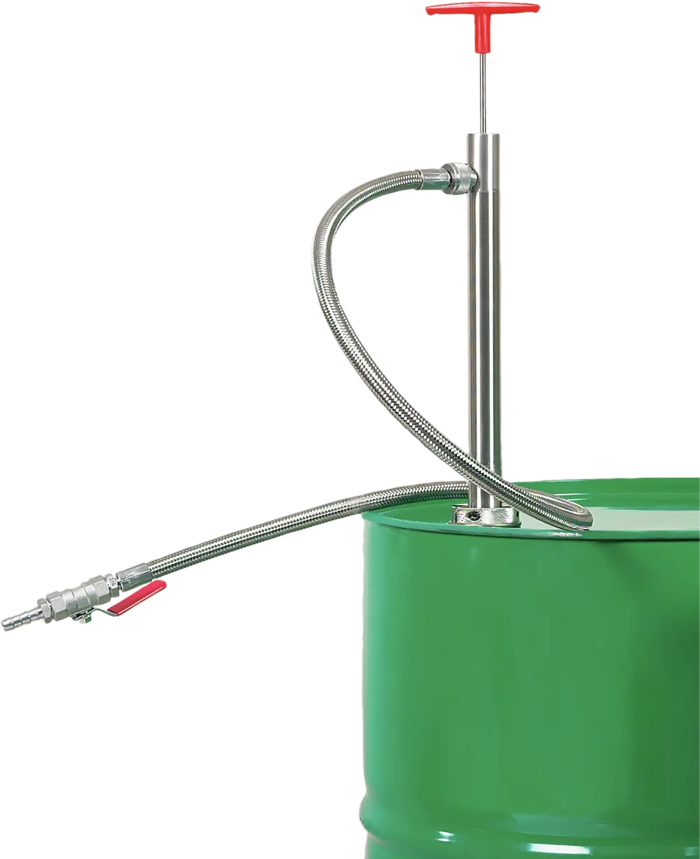 Fasspumpe aus Edelstahl mit PTFE-Auslaufschlauch 1,2 m