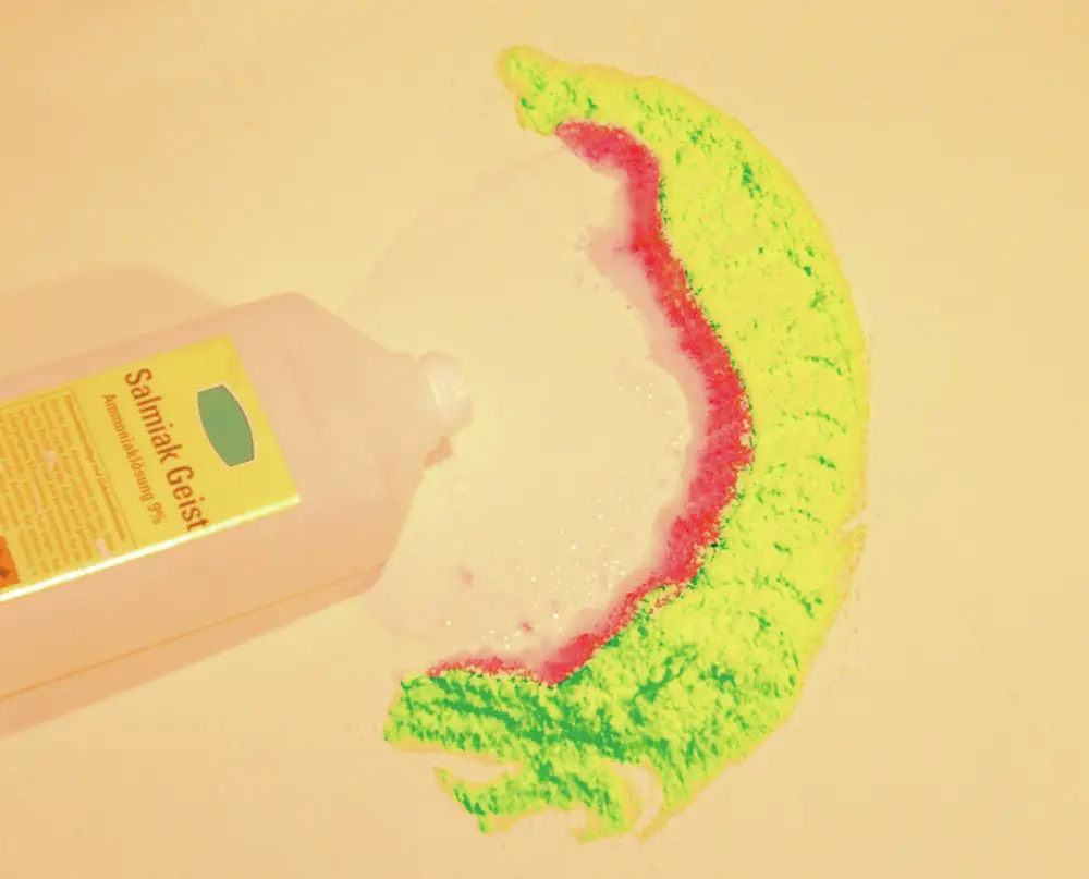 Farbumschlag Säuren (gelb) / Laugen (rot).