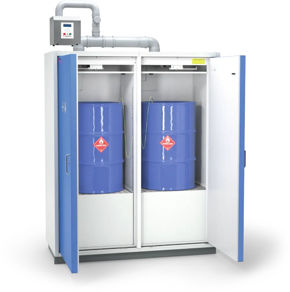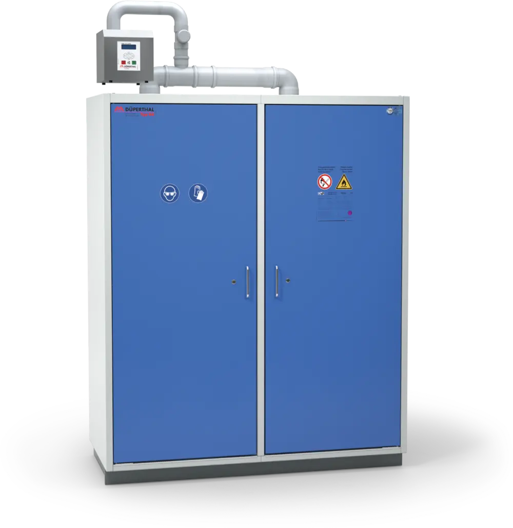 Die SUPPLY line Typ 90 von DÜPERTHAL ist speziell für die sichere Medienentnahme aus Fässern ausgelegt. Dies ermöglicht die Einbindung in vorhandene Prozessketten und eine effizientere Gestaltung der internen Wertschöpfungskette. Alle Schränke der SUPPLY line sind bereits mit vielseitigen zusätzlichen Funktionalitäten ausgestattet, die Sicherheit und Arbeitskomfort erhöhen.