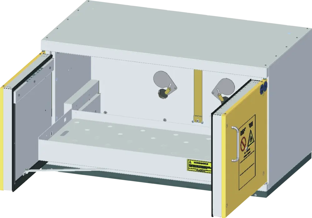 Die Sicherheitsschränke der UTS line sind die Lösung für feuergeschützte Lagerung von brennbaren Flüssigkeiten direkt am Einsatzort – unter der Arbeitsfläche. Stellen Sie sich aus den unterschiedlichen Größen und vielseitigen Zusatzoptionen die für Sie passende Lösung für Ihre Lagersituation zusammen.