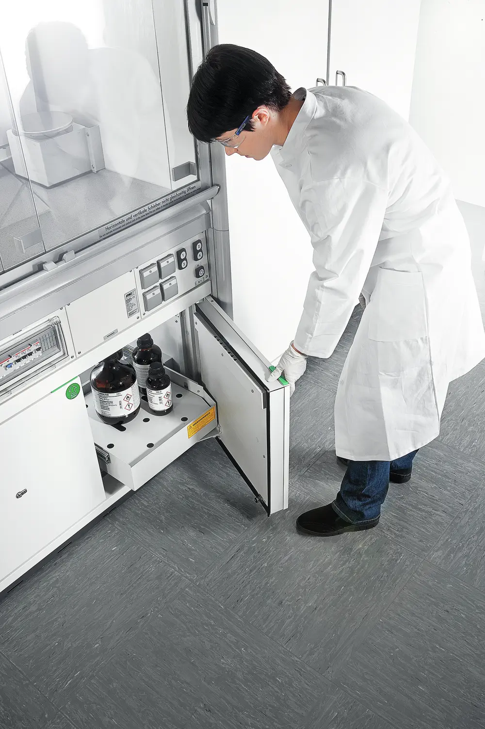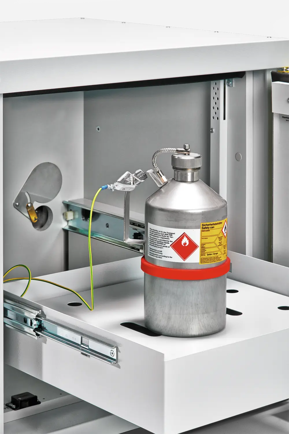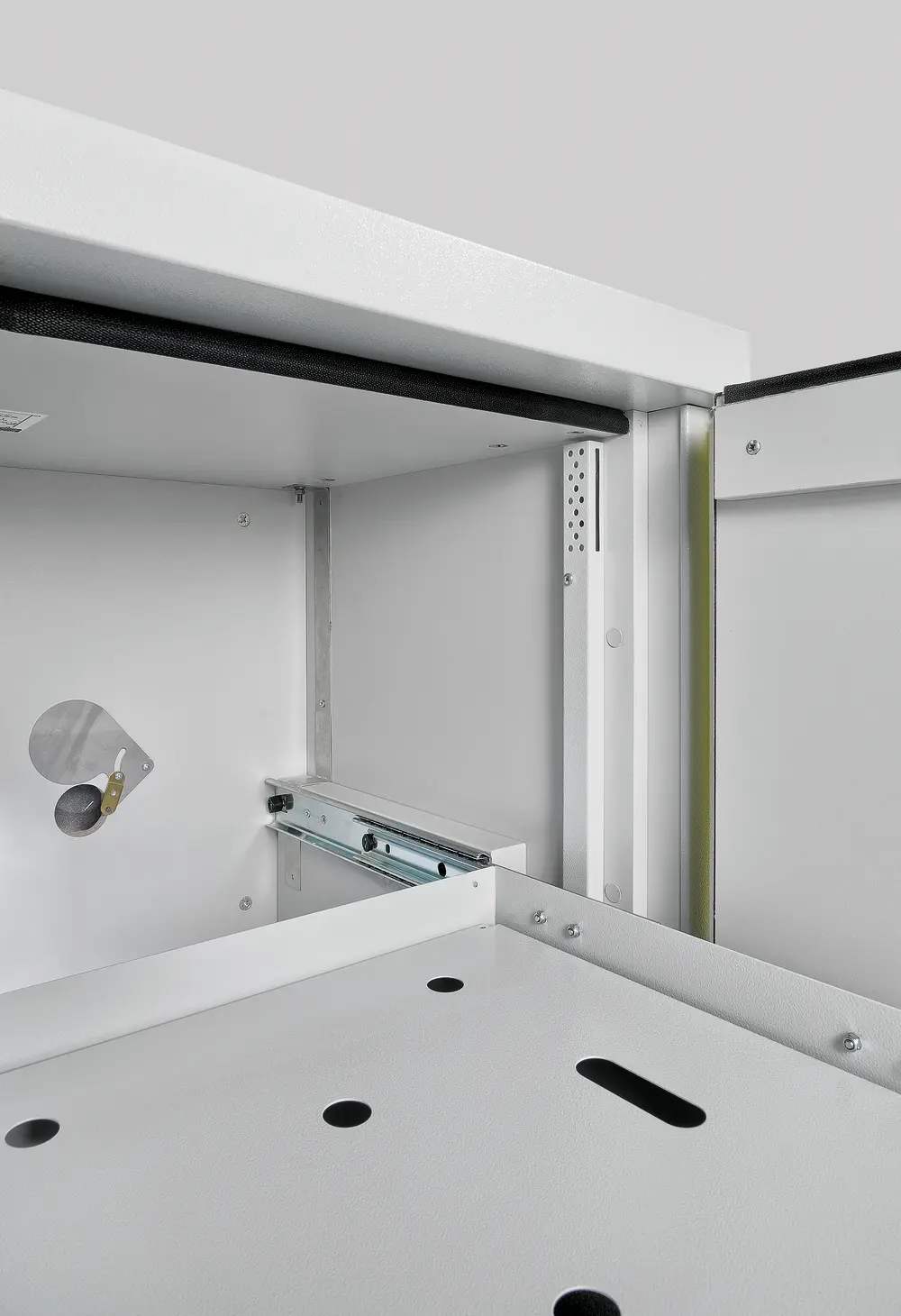 Die Sicherheitsschränke der UTS line sind die Lösung für feuergeschützte Lagerung von brennbaren Flüssigkeiten direkt am Einsatzort – unter der Arbeitsfläche. Stellen Sie sich aus den unterschiedlichen Größen und vielseitigen Zusatzoptionen die für Sie passende Lösung für Ihre Lagersituation zusammen.