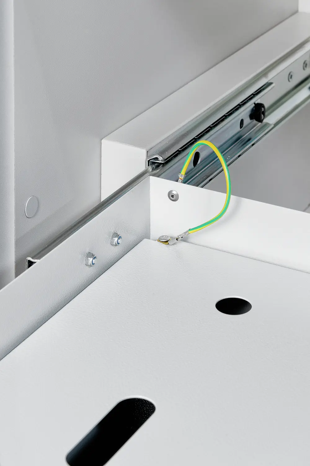 Serienmäßig Potenzialausgleichslaschen am Schrank helfen, Funkenbildung zu vermeiden.