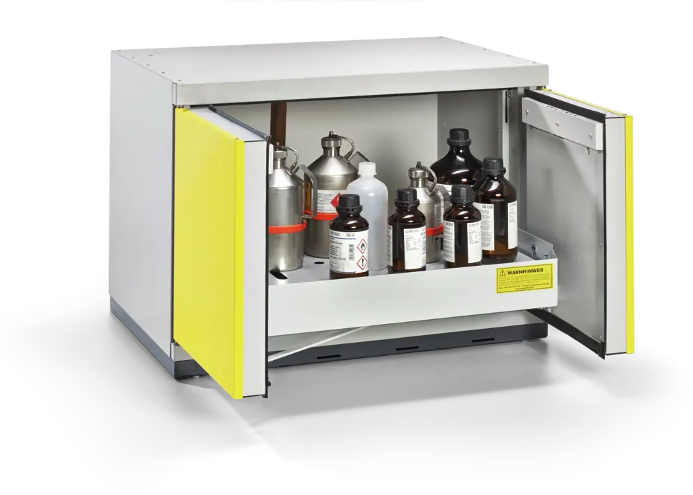 Die Sicherheitsschränke der UTS line sind die Lösung für feuergeschützte Lagerung von brennbaren Flüssigkeiten direkt am Einsatzort – unter der Arbeitsfläche. Stellen Sie sich aus den unterschiedlichen Größen und vielseitigen Zusatzoptionen die für Sie passende Lösung für Ihre Lagersituation zusammen.