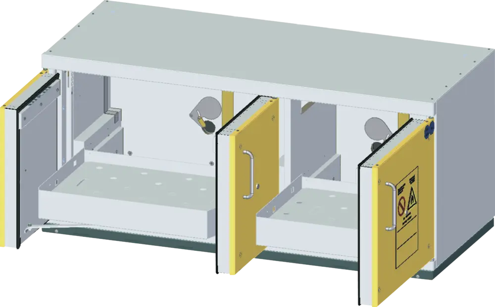 Die Sicherheitsschränke der UTS line sind die Lösung für feuergeschützte Lagerung von brennbaren Flüssigkeiten direkt am Einsatzort – unter der Arbeitsfläche. Stellen Sie sich aus den unterschiedlichen Größen und vielseitigen Zusatzoptionen die für Sie passende Lösung für Ihre Lagersituation zusammen.